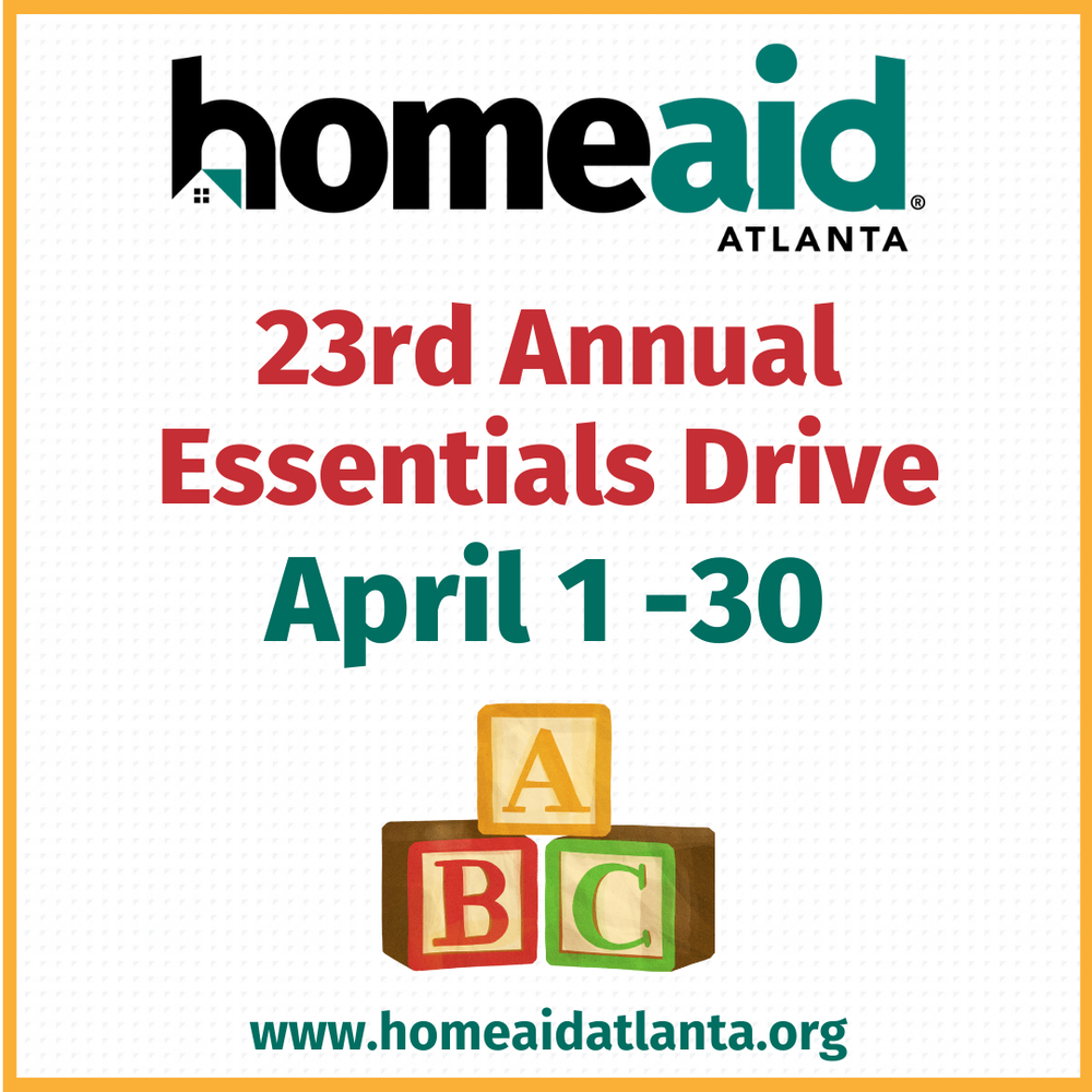 HomeAid Atlanta’s 23rd Annual Essentials Drive runs April 1-30, in honor of Mother’s Day, delivering essential baby items to families in need. Throughout the month of April, anyone can donate diapers, baby wipes, and funds to help families experiencing, or at risk of, homelessness. Your company can host an Essentials Drive donation drop-off location.