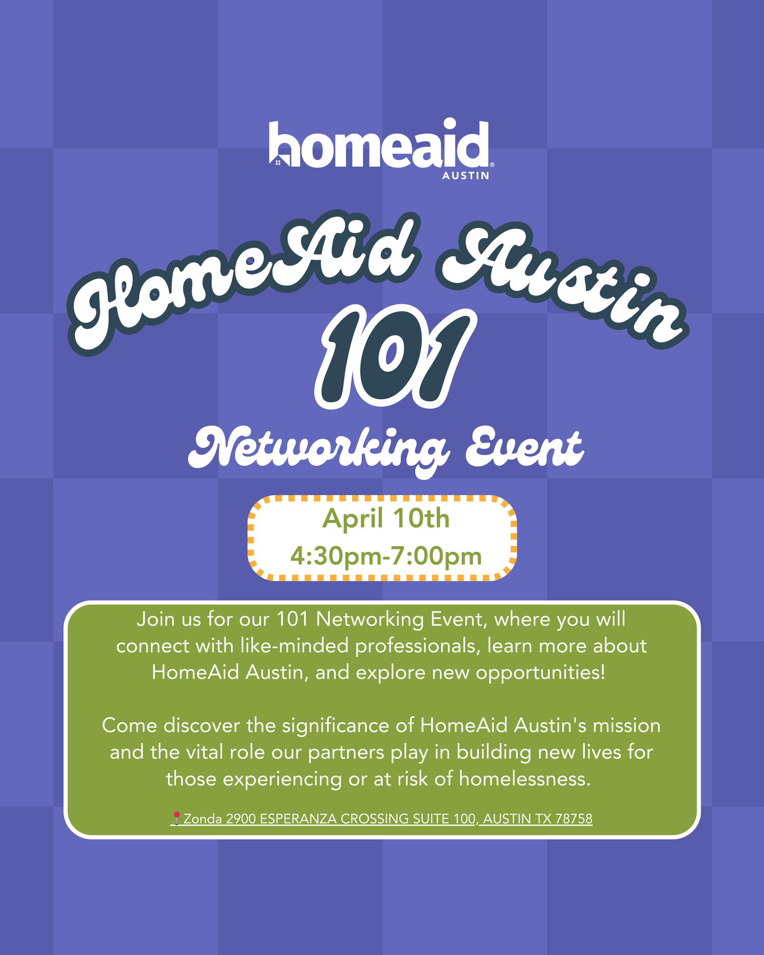 Join us to connect with like-minded professionals, get more info about HomeAid Austin, and explore new opportunities. Along with our gathering together, we will have a fun game of Name That Tune Bingo with Texas Red Entertainment, small bites, and drinks!