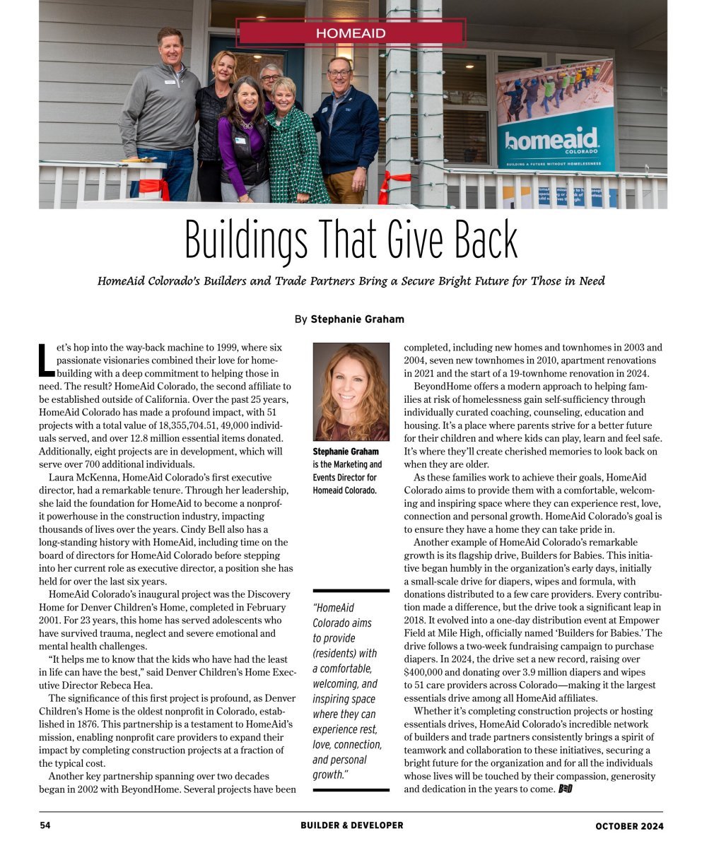 HomeAid Colorado Featured in October Issue of Builder & Developer Magazine (pg.54)
